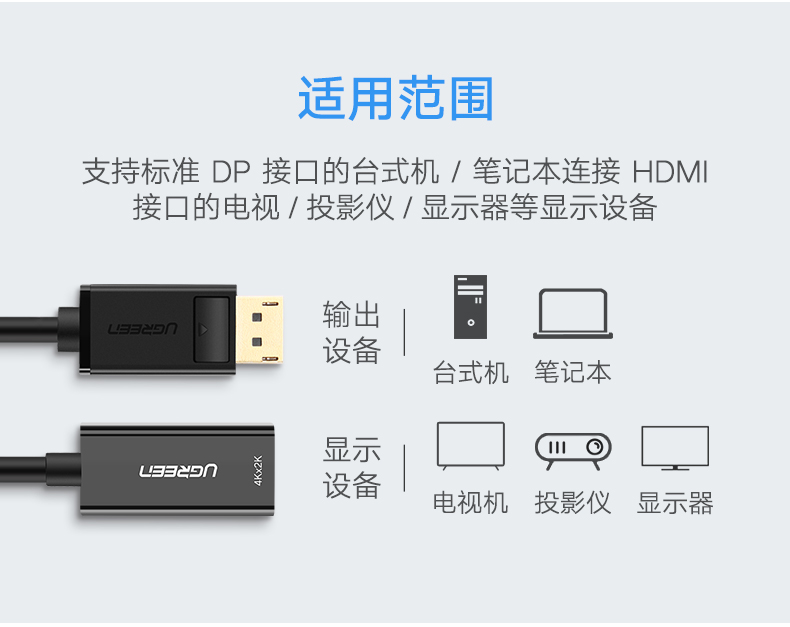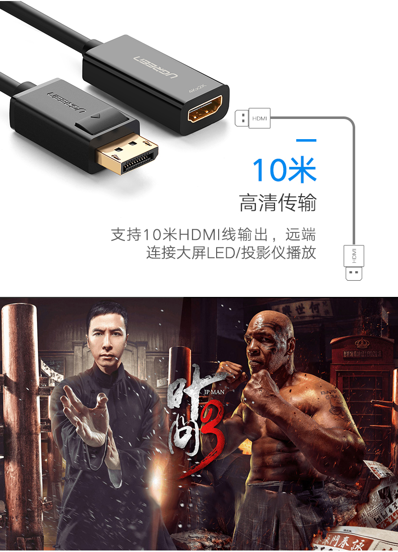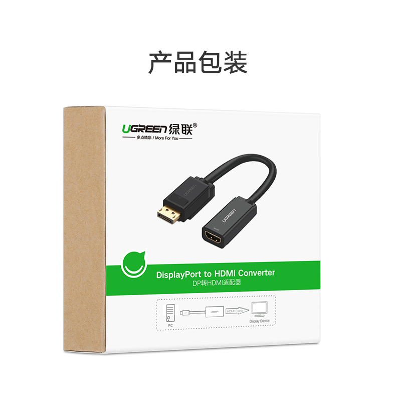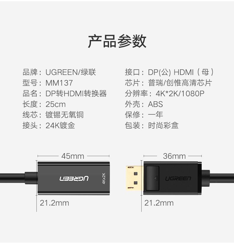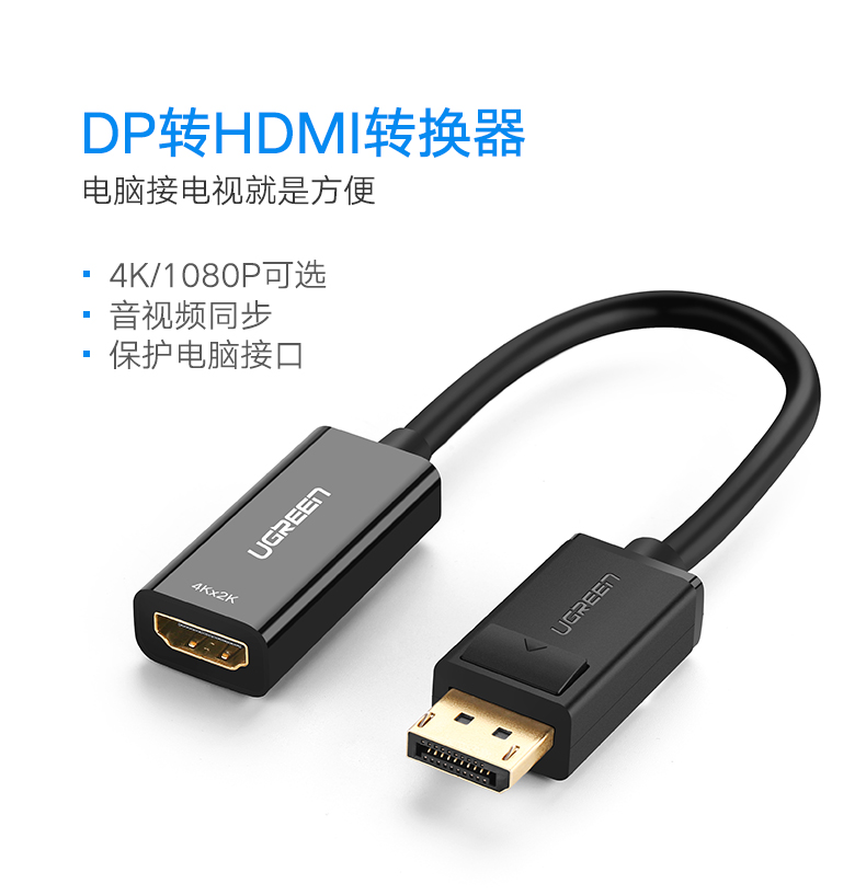 商品名称:绿联 转换器 40362/MM137 DP(公)转HDMI(母) 长25cm 分辨率1080P 黑色