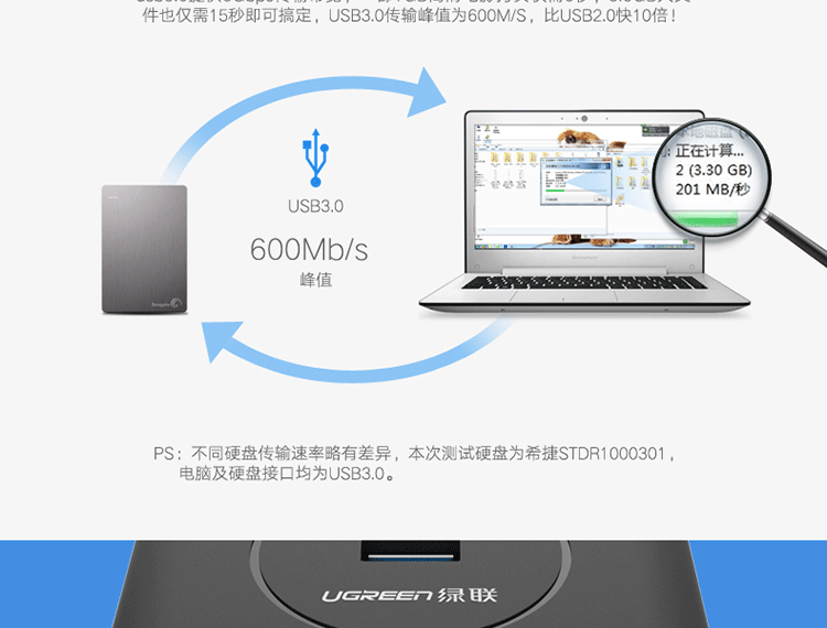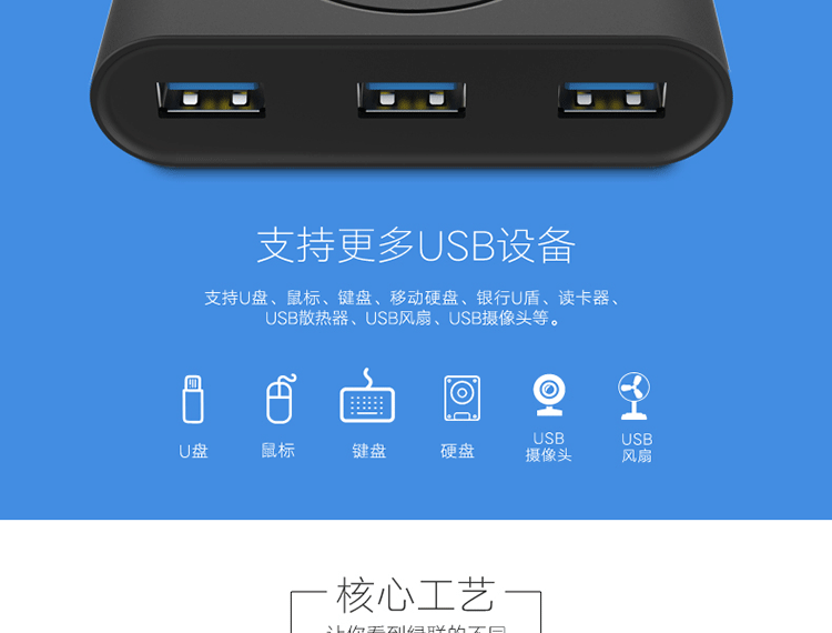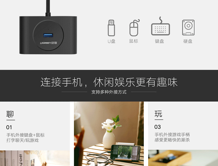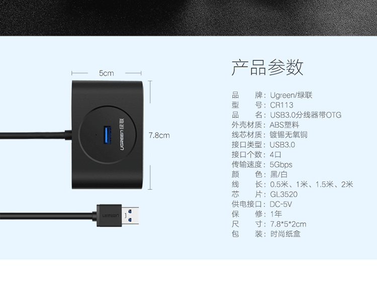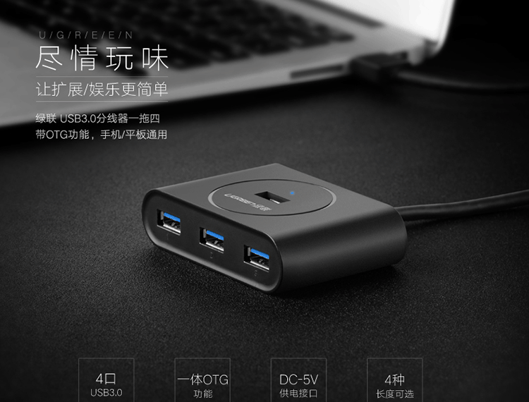 商品名称:绿联USB3.0分线器 20290 高速扩展4口