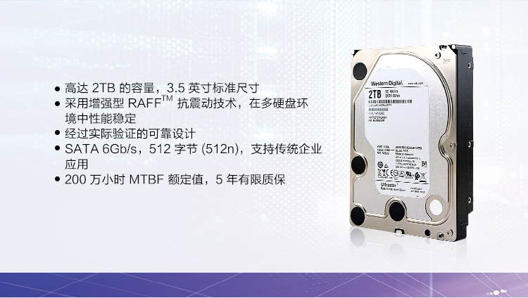 商品名称:西部数据 企业级硬盘 HUS722T2TALA604 转速7200rpm 2TB 缓存128mb SATA接口