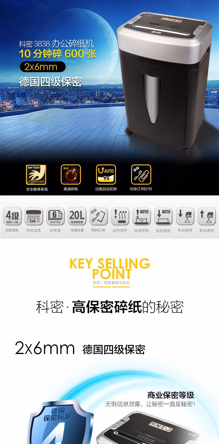 商品名称:科密 (Comet)3838碎纸机米粒级办公碎纸机单次碎2小时高速粉碎机