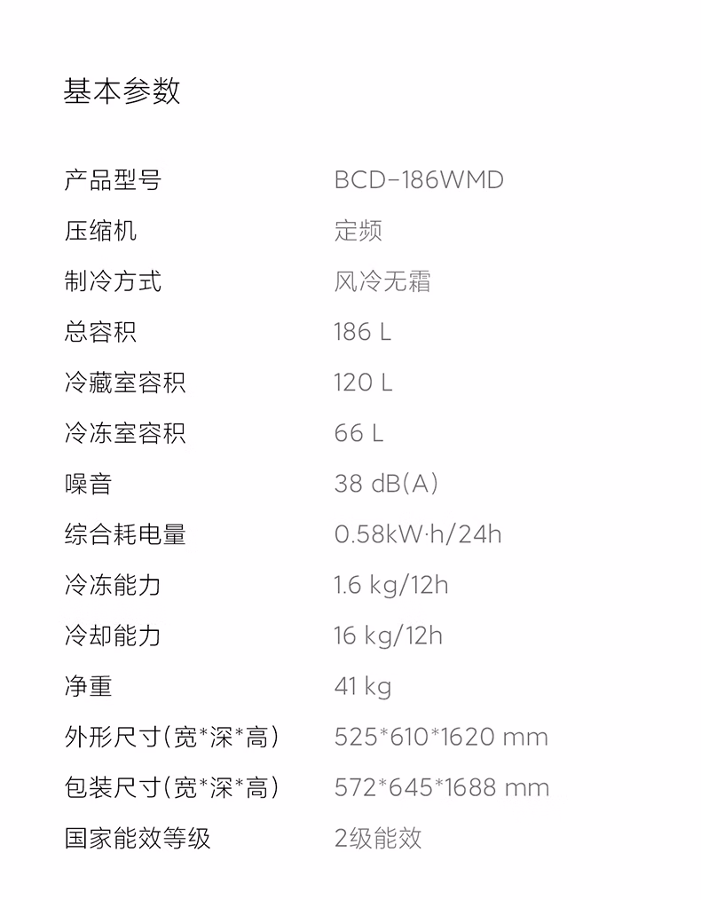 商品名称:小米冰箱 米家小型冰箱186升