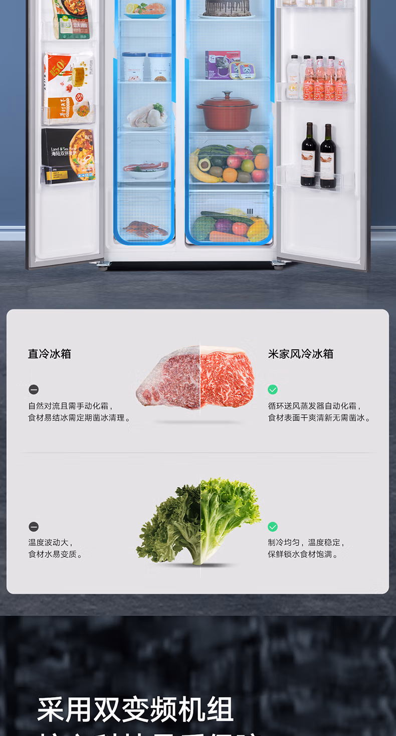商品名称:小米冰箱双开门540L米家互联网对开门智能家电冰箱