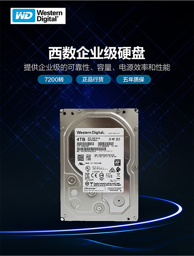 商品名称:西部数据 监控硬盘 HUS722T1TALA604 企业级 1T 720
