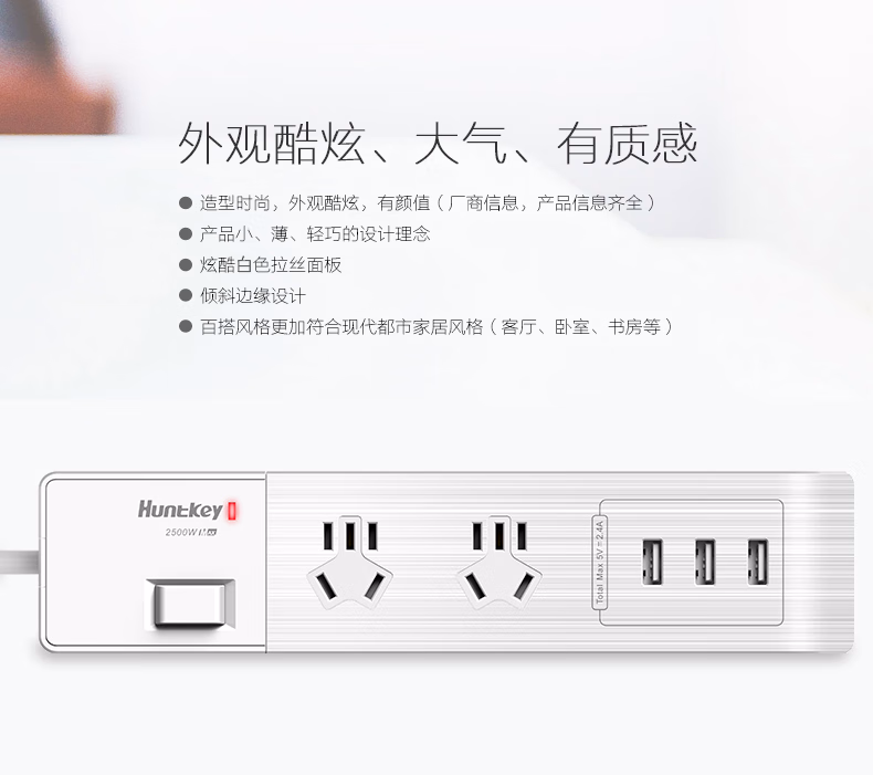 商品名称:航嘉(Huntkey)排插 插座接线拖线板插板带线多功能家I用面板多孔USB排插 SV601