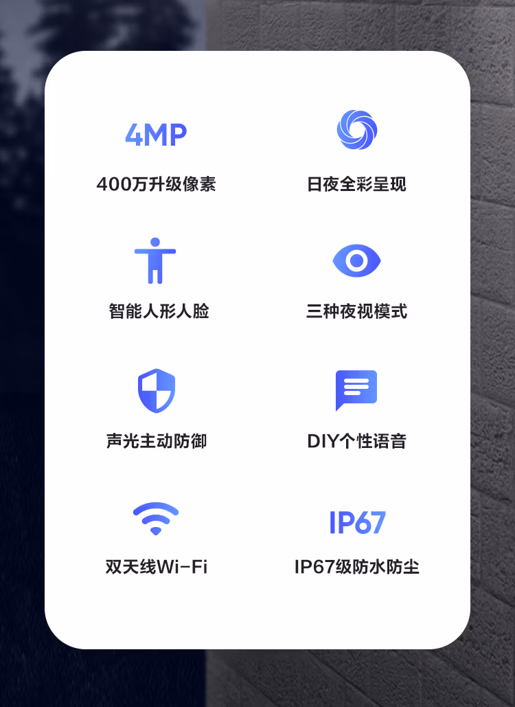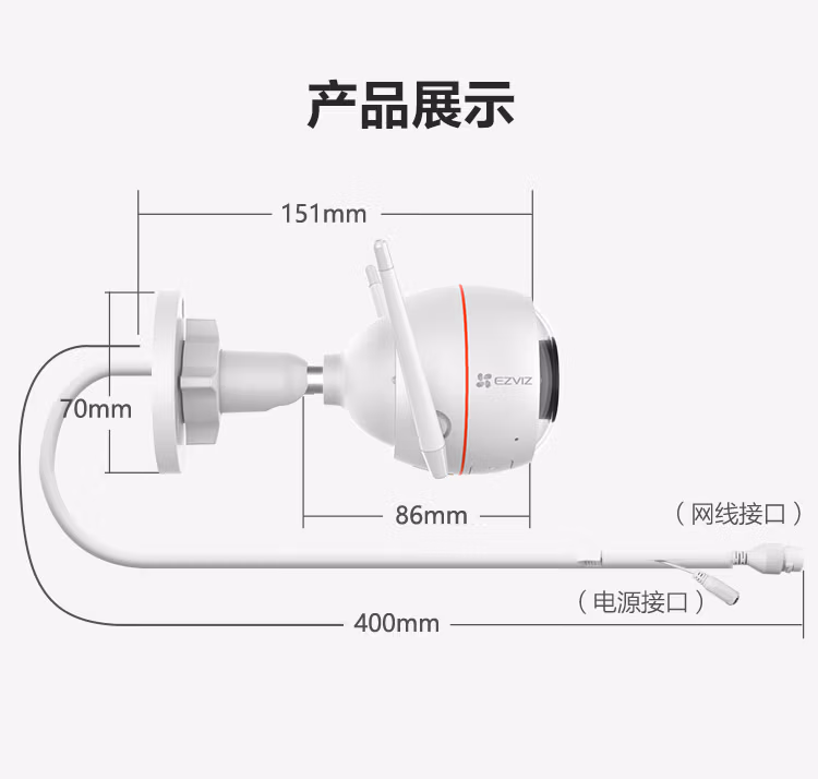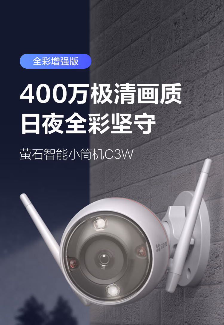 商品名称:萤石 EZVIZ C3W 4MP 2.8MM 400万超清日夜全彩超清无线监控摄像头 室外IP67防水 AI人形检测