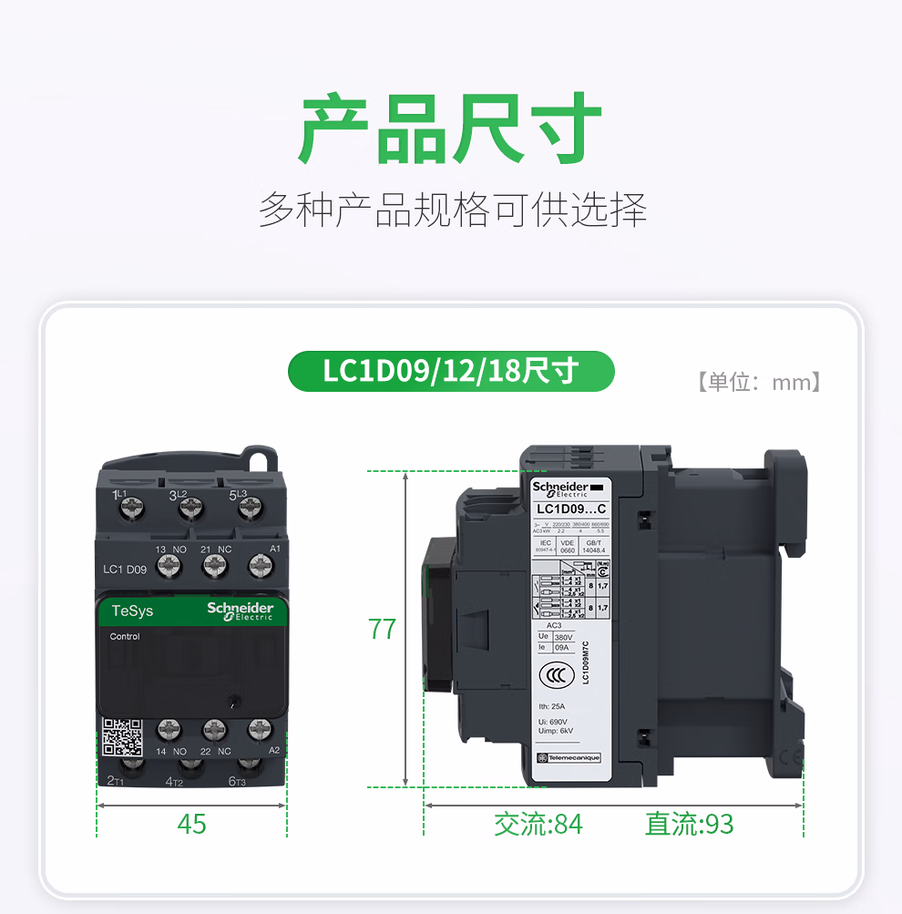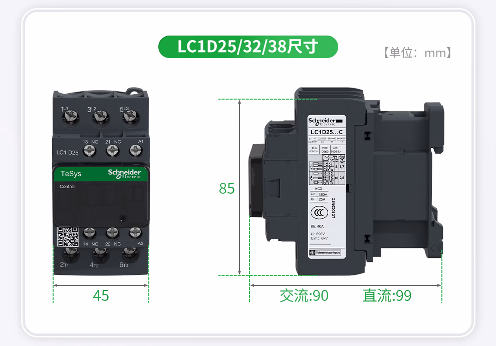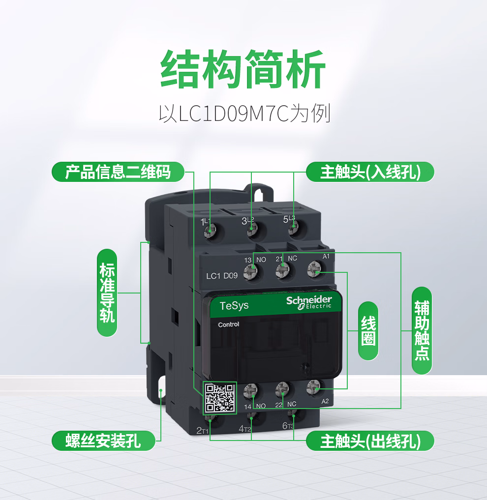 商品名称:施耐德电气 TeSys LC1D国产 3P 32A 1NO+1NC 交流接触器 LC1D32M7C 220VAC