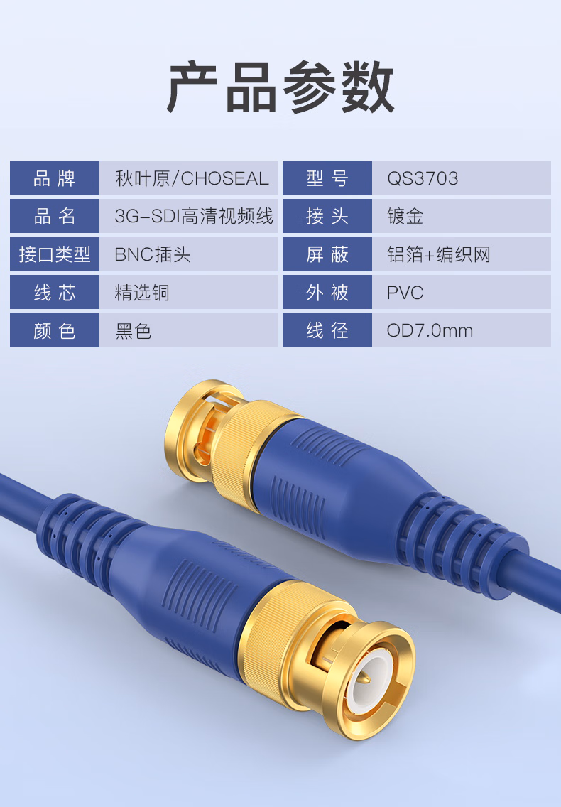 商品名称:秋叶原(CHOSEAL) 3G-SDI视频连接线 30米