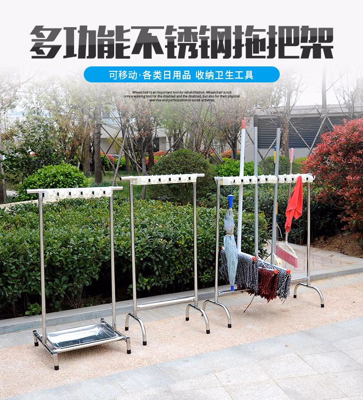 商品名称:不锈钢拖把架可移动扫把墩布挂架落地式拖把挂卫生间阳台收纳工具 5挂6钩