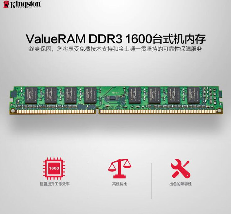 商品名称:金士顿 台式机内存 DDR3 1600 8G 绿色