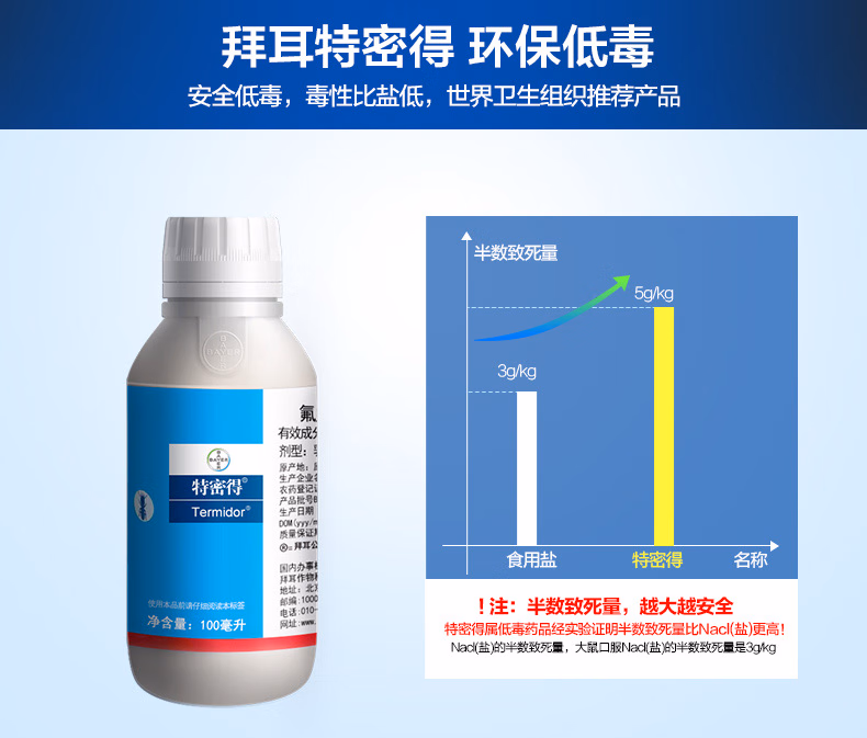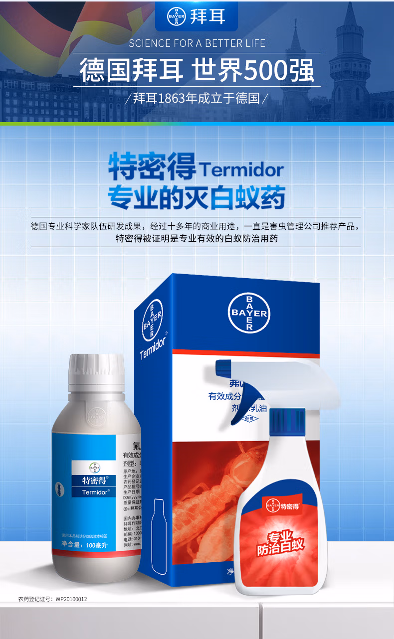 商品名称:拜耳(BAYER)白蚁药特密得家用全窝端进口灭白蚂蚁药水装修预防灭杀蚁药大面积 白蚁杀虫剂特密得100ml