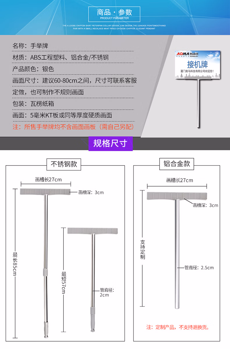 商品名称:印家轩手举牌接机牌接站牌广告牌指示牌举牌宣传手牌班级活动领队牌 定制 铝合金手举牌杆长40cm【不含板】