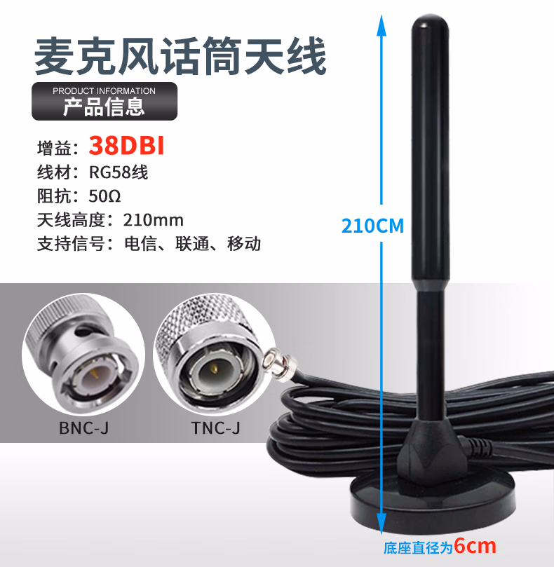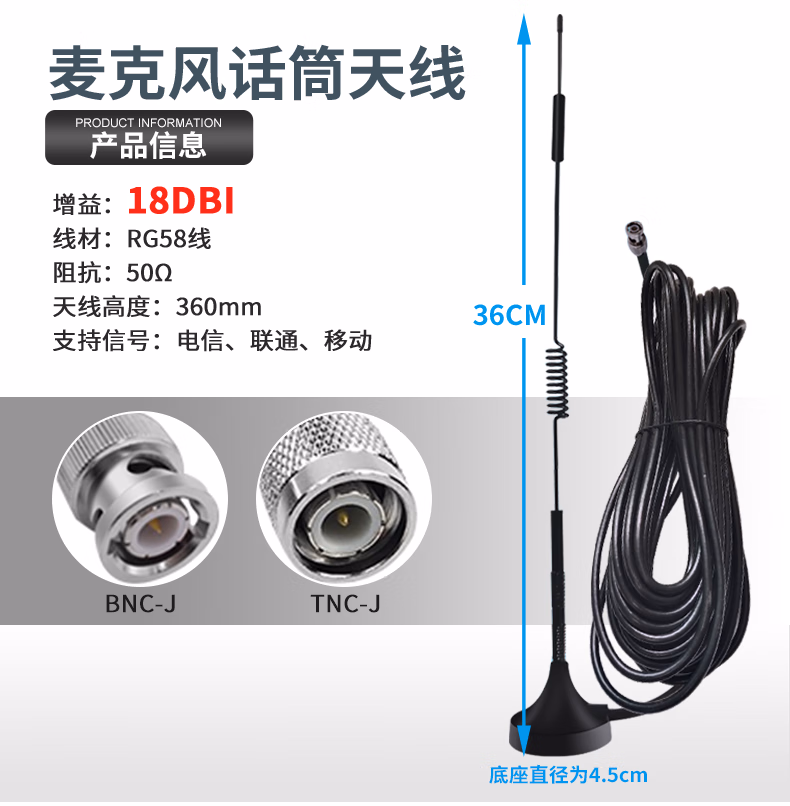 商品名称:无线麦克风天线主机信号延长器(TNC中吸盘天线 5米)