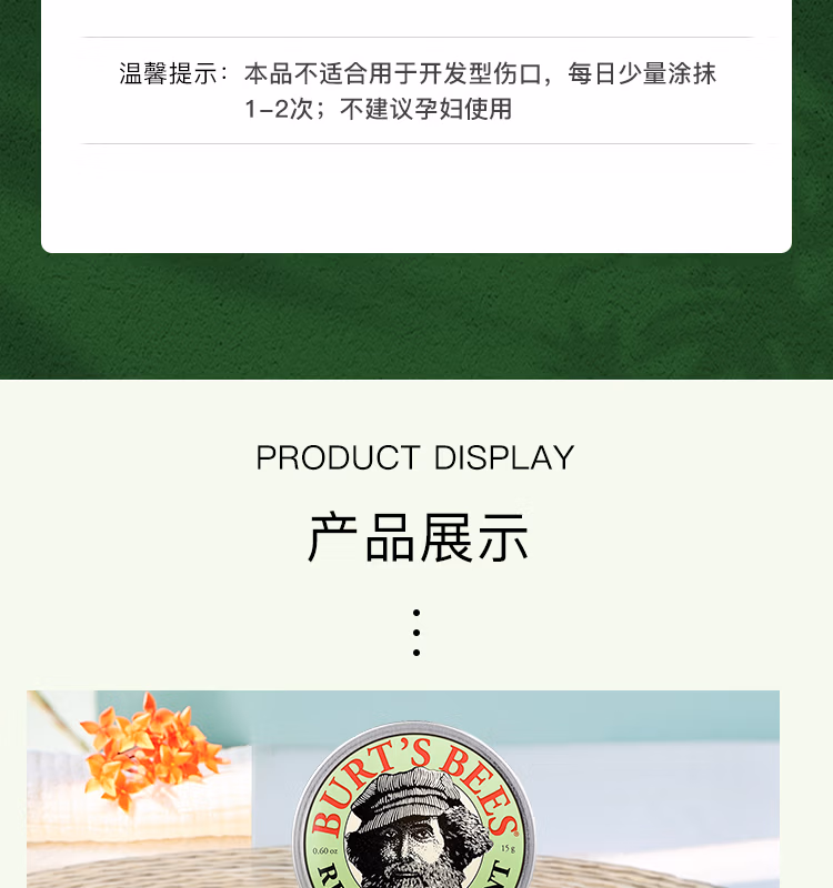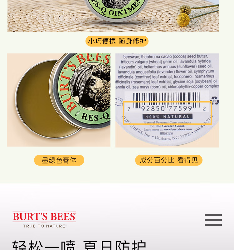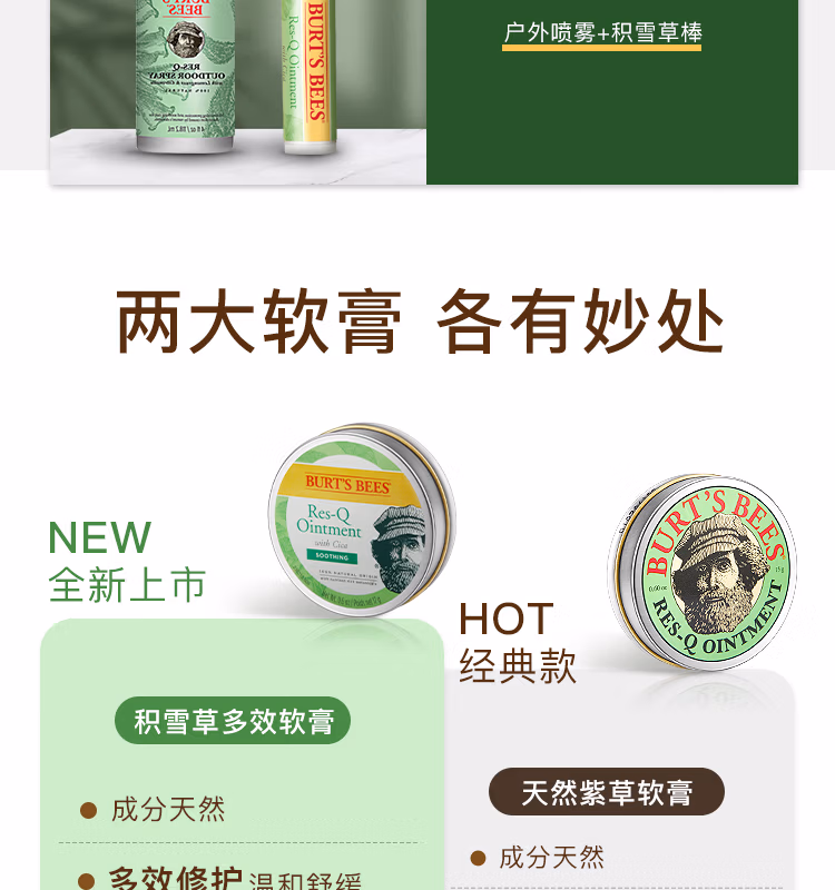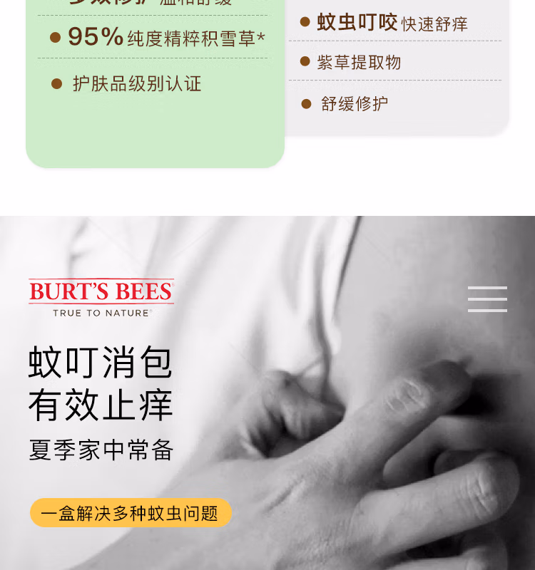 商品名称:小蜜蜂(Burt'sBees)驱蚊神器 蚊虫叮咬 止痒消肿 天然紫草软膏15g&积雪草膏17g 美国