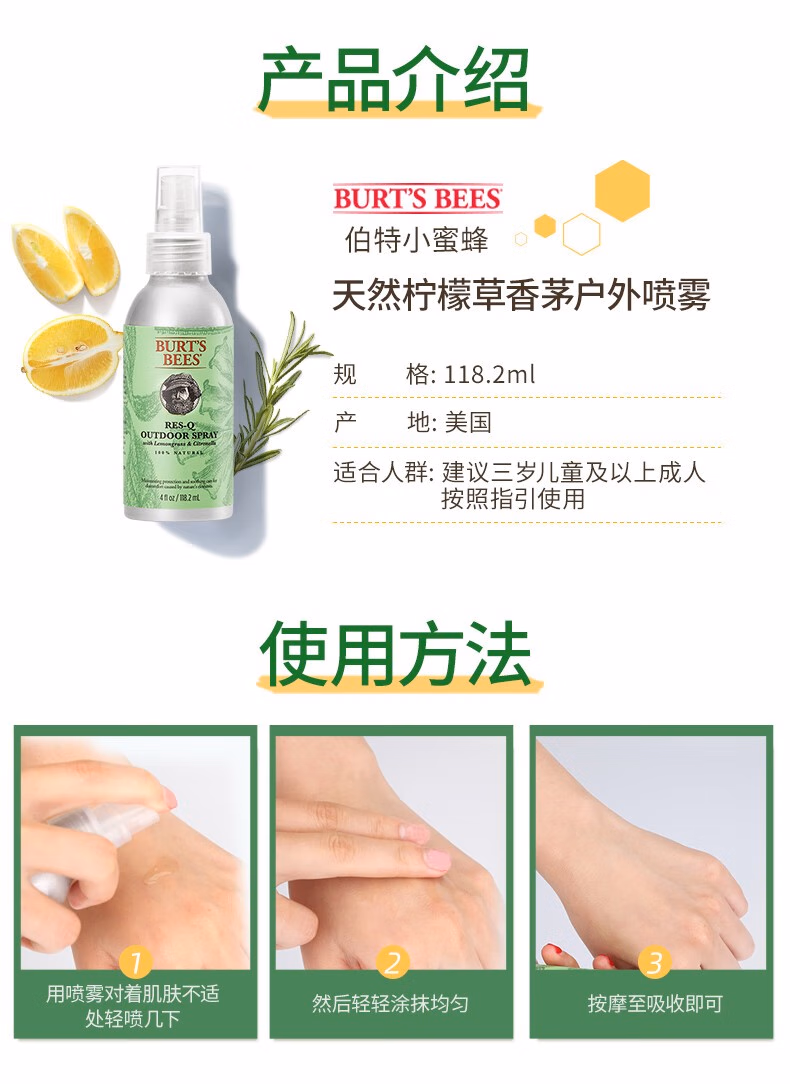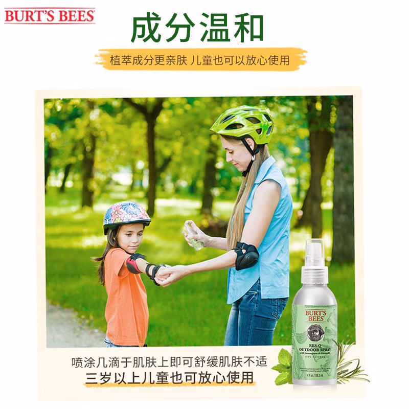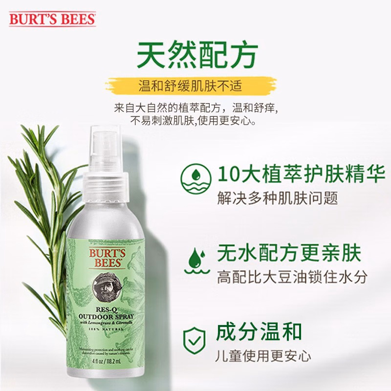 商品名称:小蜜蜂(Burt'sBees)防叮喷雾118ml 驱蚊 蚊虫叮咬花露水蚊怕水儿童户外保湿修护