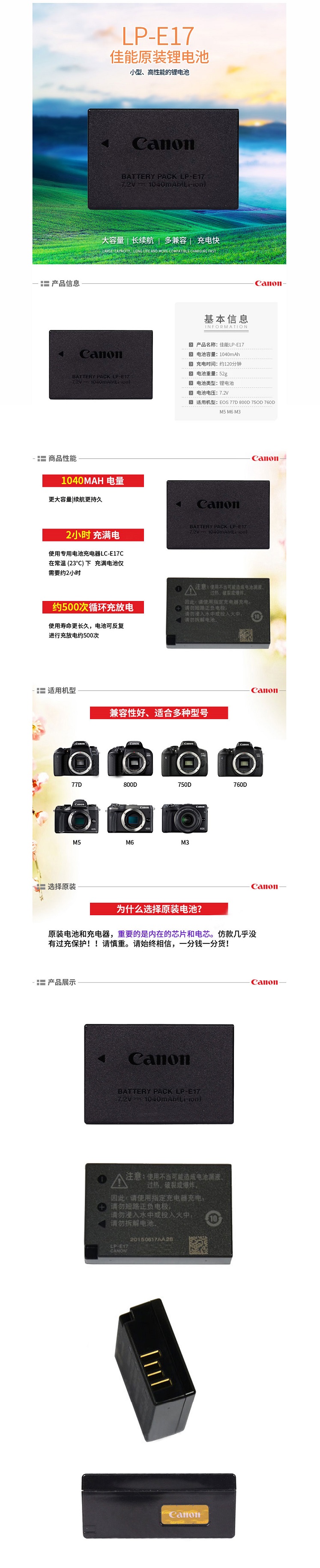 商品名称:佳能 相机电池 LP-E17 适用于佳能EOS 760D 750D M3 黑色