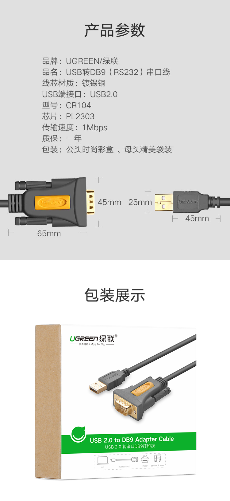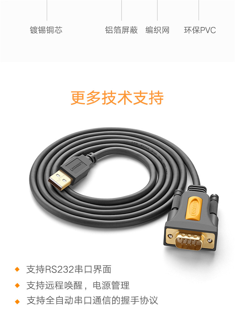 商品名称:绿联 20210 转换线 USB转RS232 1m