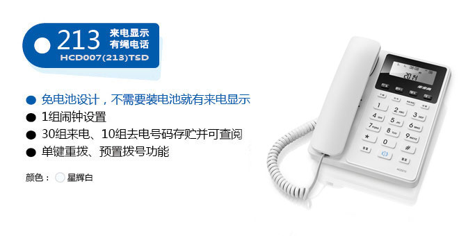 商品名称:步步高电话机 HCD007(213) 来电显示