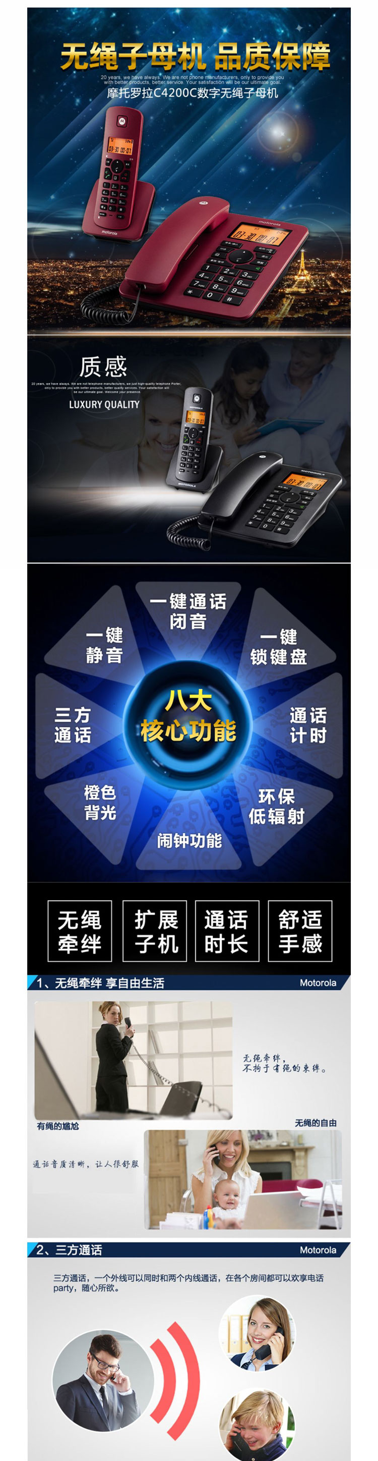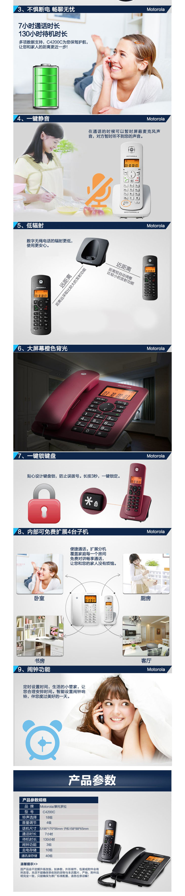 商品名称:摩托罗拉( moto) 数字无线电话子母机 C4200C
