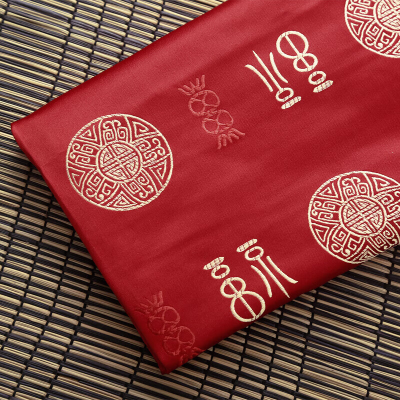 商品名称:大红色三五织锦缎布料喜事唐装丝绸布婚庆装饰布开业剪彩红布佛布 1.5米宽大红倒福(一米价)