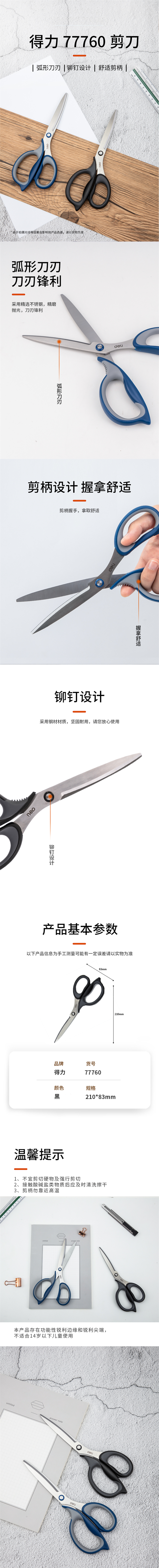 商品名称:得力 77760人机工程手工不锈钢学生用剪子 黑色 单位:把