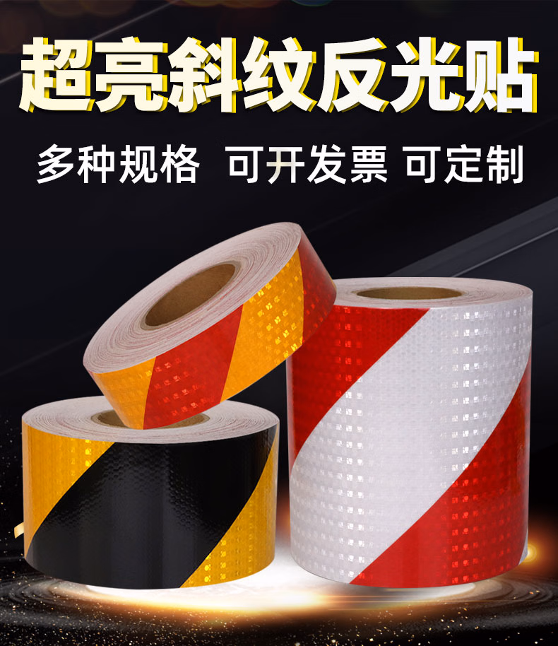 商品名称:PVC警示胶带黑黄反光斑马线地标贴工厂车间地面地板划线定位反光贴 15cm闪亮星黑黄斜纹3米