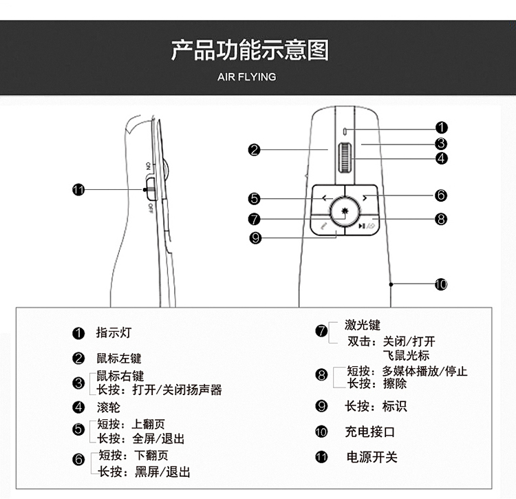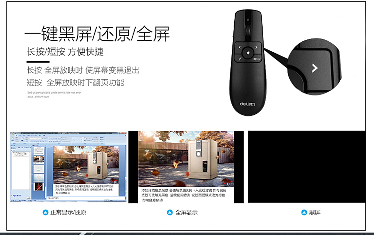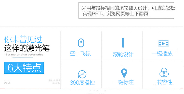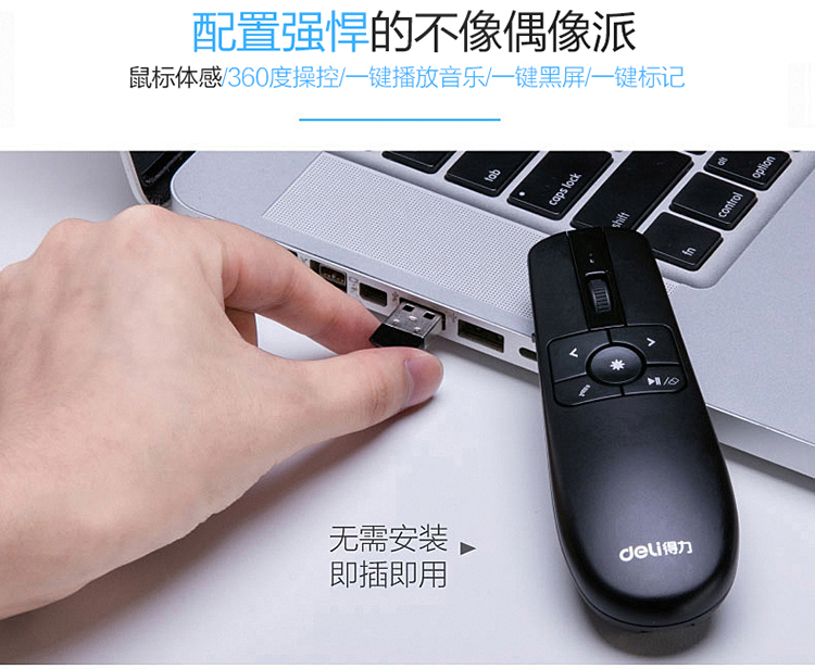 商品名称:得力(Deli) 飞鼠 激光 翻页笔 2803 红光 遥控距离30m 黑色