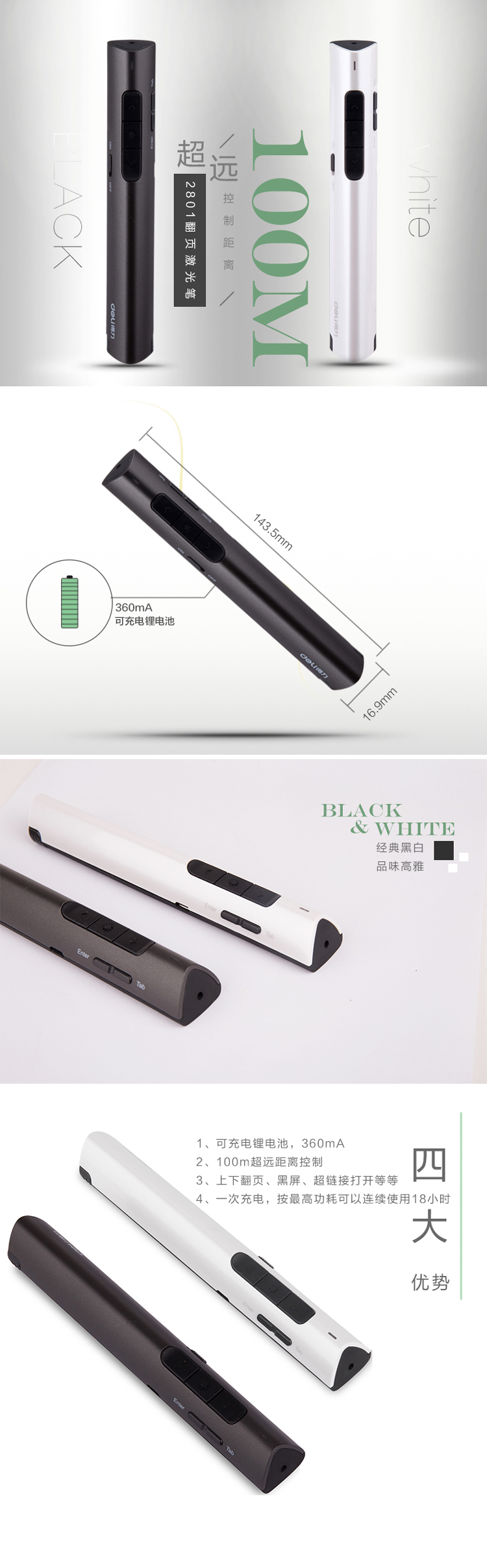 商品名称:得力翻页激光笔2801 白色